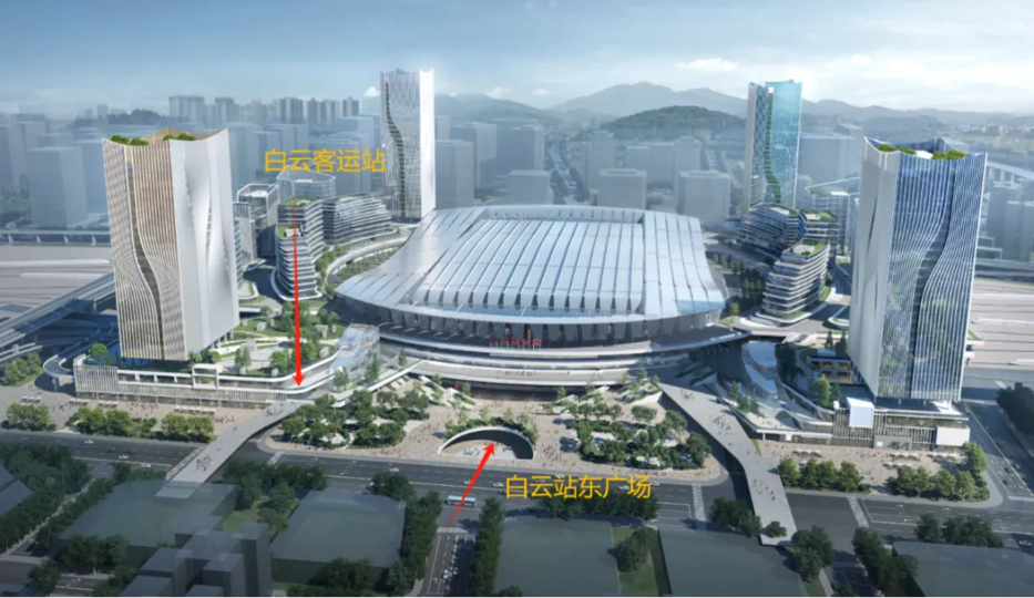 乘坐网约车、出租车的乘客可导航到“广州白云站东广场”,下车后沿台阶下到负一层,往左手边走100米即可到达广州白云客运站。